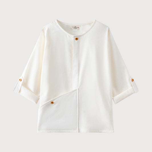 Linen top with asymmetric pocket