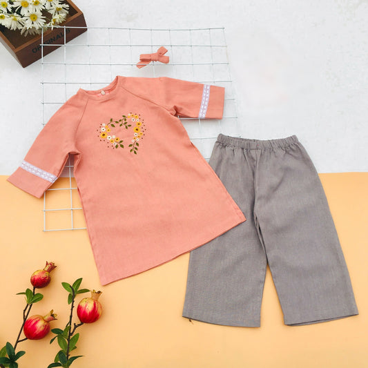 Vietnamese traditional linen dress Ao Dai with embroidery