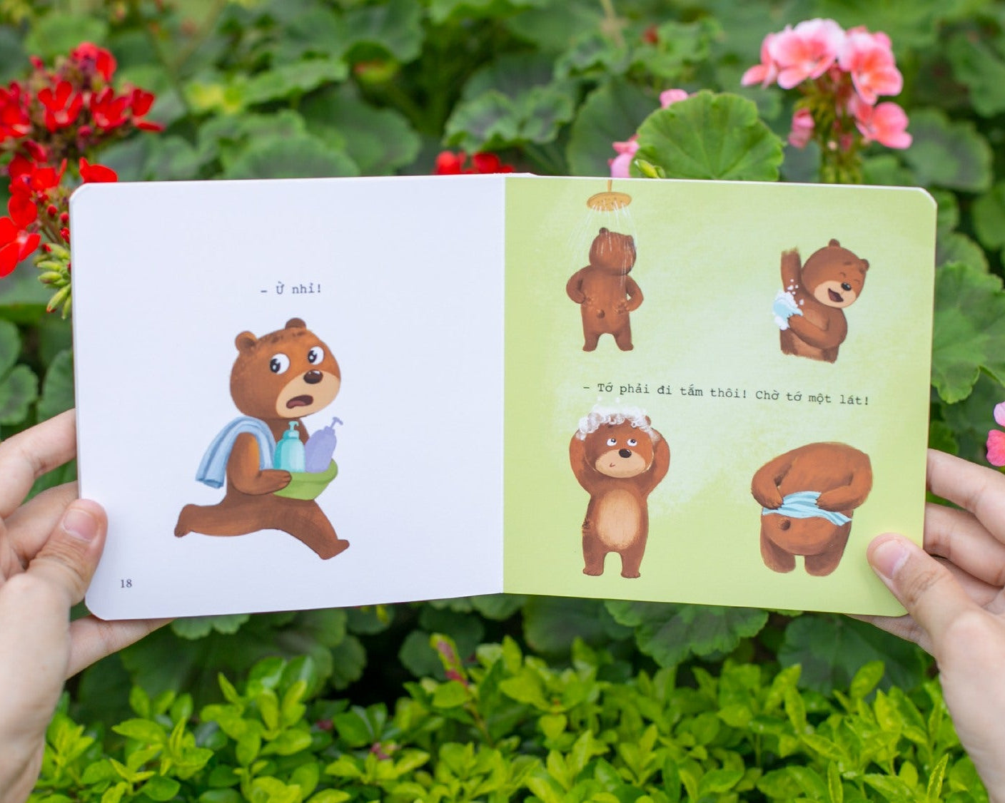 Bộ sách gồm 4 cuốn không chỉ giúp trẻ thực hành chăm sóc bản thân qua các hoạt động như: đi tắm, đánh răng, đi vệ sinh, chọn lựa trang phục; mà còn lồng ghép khéo léo những bài học giá trị: